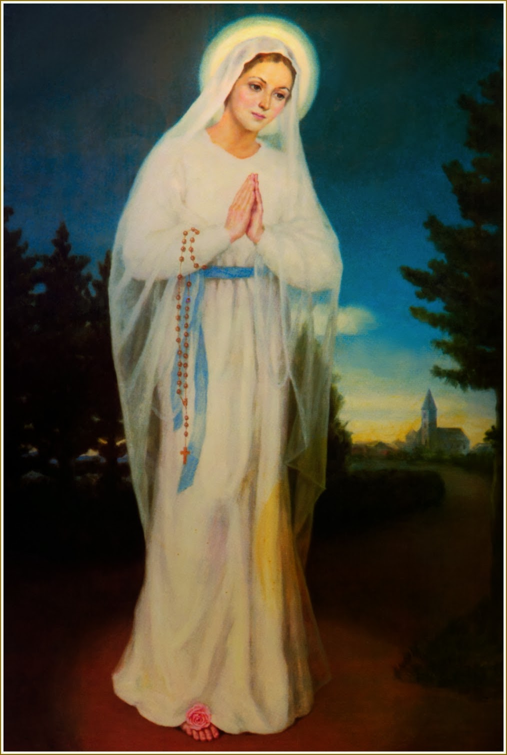 Por isso filhinhos, segui confiantemente na oração REZANDO MUITOS ROSÁRIOS POR DIA como a Minha filhinha Mariette que chegava até mesmo a rezar seis Rosários por dia por Meu amor no meio da neve, da chuva e do frio.
